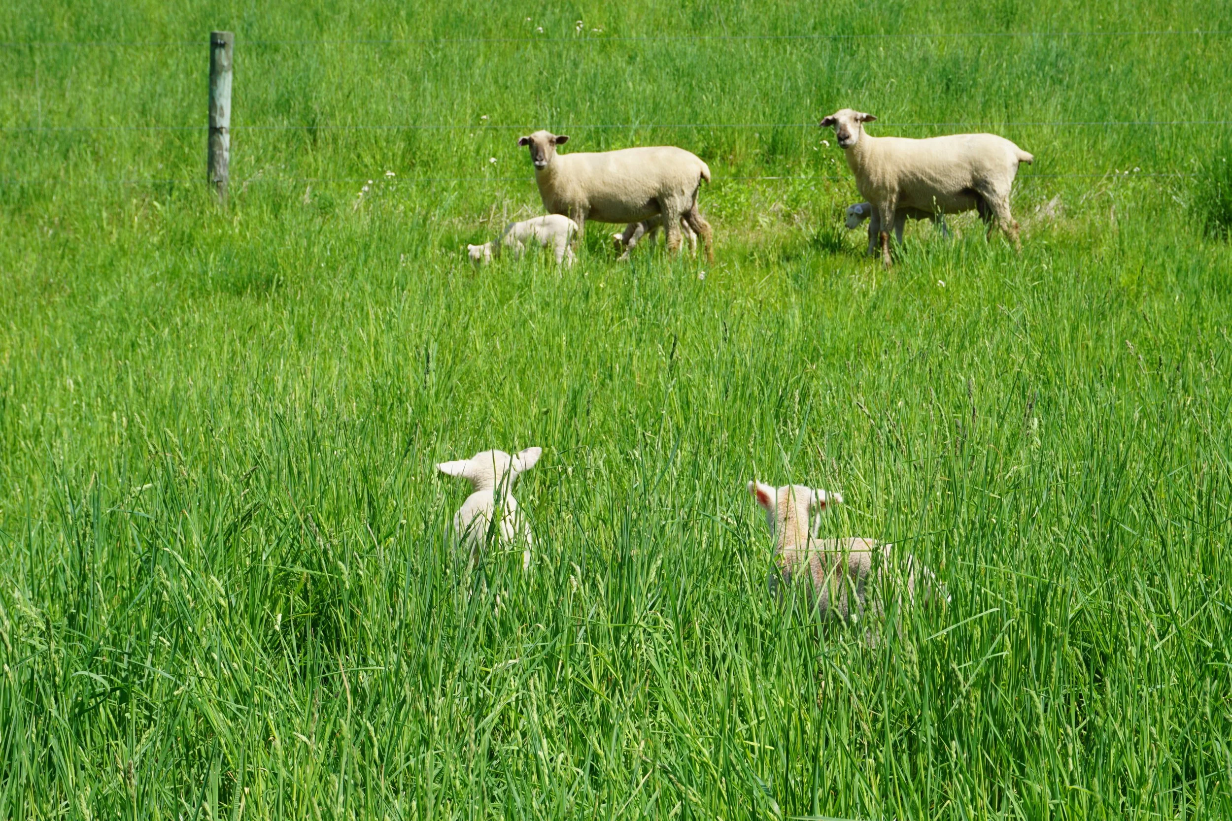 “I see six lambs,” Lauren said, marching toward the ewe. She squatted in the grass next to a brand-new lamb that I hadn’t seen, its fur a mustard yellow color. “It’s covered in meconium.”